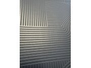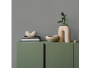 Šedá vliesové tapety s vinylovém povrchem, vzor ve stylu Art Deco, stříbřité hladké metalické linie.