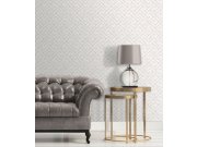 Luxusní vliesové tapety v béžovo-šedé barvě s plastickým krémovém geometrickým vzorem na podkladě imitující štukovou omítku. Foto interiéru je pouze ilustrační - odlišné barvy.