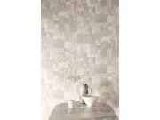 Luxusní vliesové tapety v béžovo-šedé barvě s plastickým krémovém geometrickým vzorem na podkladě imitující štukovou omítku. Foto interiéru je pouze ilustrační - odlišné barvy.