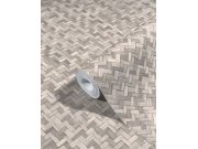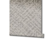 Luxusní vliesové tapety v béžovo-šedé barvě s plastickým krémovém geometrickým vzorem na podkladě imitující štukovou omítku. Foto interiéru je pouze ilustrační - odlišné barvy.