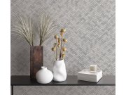 Luxusní vliesové tapety s vinylovém povrchem - pololesklé šedé, jemně plastické kosočtverce, látkové textura. Foto interiéru je pouze ilustrační - odlišné barvy.