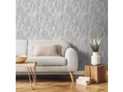 Vliesové tapety na zeď s vinylovém povrchem se vzorem listů v šedých a bílých odstínech s jemnými odlesky.