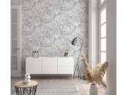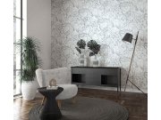 Luxusní plastické vliesové tapety s vinylovém povrchem, motivy větviček a listů v odstínech šedé a šedo-béžové. Foto interiéru je pouze ilustrační - odlišné barvy.