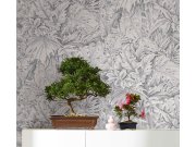 Luxusní, jemně plastické, šedo-bílá vliesové tapety s vinylovém povrchem - listy.