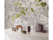 Luxusní béžovo-šedá vliesové tapety s vinylovém povrchem, motivy listů tropických rostlin, odstíny béžové a šedé, látkové textura. Foto interiéru je pouze ilustrační - odlišné barvy.
