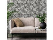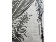 Vliesové tapety na zeď, motivy listů a palem v odstínech šedé a černé. Látkové textura.