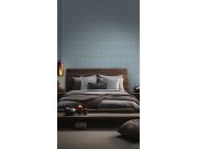 Luxusní, výrazně plastické, geometrické vliesové tapety s vinylovém povrchem, odstíny šedo-béžové s kovovém leskem. Foto interiéru je pouze ilustrační - odlišné barvy.