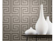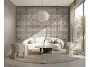 Luxusní šedo-béžové geometrické vliesové tapety s vinylovém povrchem. Foto interiéru je pouze ilustrační - odlišné barvy.