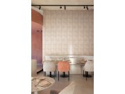 Luxusní geometrické vliesové tapety s vinylovém povrchem, efektní střídání plastických textur, odstíny šedo-béžové. Foto interiéru je pouze ilustrační - odlišné barvy.