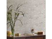 Jemně plastické vliesové tapety na zeď, květinové vzor v odstínech béžové a šedé. Foto interiéru je pouze ilustrační - odlišné barvy.