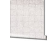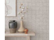 Luxusní vliesové tapety s vinylovém povrchem, plastický mačkaný vzor, šedo-béžové pololesk. Foto interiéru je pouze ilustrační - odlišné barvy.