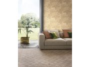 Luxusní vliesové tapety s vinylovém povrchem, plastické motivy listů v odstínech pololesklé šedo-béžové, hrubší látkové textura. Foto interiéru je pouze ilustrační - odlišné barvy.