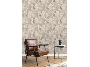 Šedo-béžové jemně strukturované vliesové tapety s vinylovém povrchem, listy. Foto interiéru je pouze ilustrační - odlišné barvy.