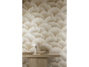 Plastické vliesové tapety na zeď, listy Ginkga v šedo-béžovéch odstínech.