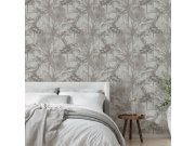 Vliesové tapety na zeď, motivy listů a palem v šedo-béžovéch odstínech. Látkové textura.