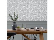 Bílá vliesové tapety na zeď, květinové vzor v odstínech šedé.