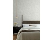 Metalické šedo-bílá vliesové tapety na zeď, šedostříbrný metalický podklad, matné bílé obrysy.