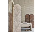 Jemně plastické vliesové tapety na zeď, květinové vzor v odstínech béžové a hnědé, detaily pololesklé béžové, podklad tmavě šedý. Foto interiéru je pouze ilustrační - odlišné barvy.