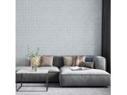 Šedo-modrá vliesové tapety s vinylovém povrchem, plastické čáry tvoří efektní vzorek. Foto interiéru je pouze ilustrační - odlišné barvy.