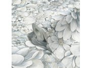 Luxusní, strukturovaná, šedo-modrá květinové vliesové tapety s vinylovém povrchem.