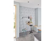 Šedo-modrá vliesové tapety s vinylovém povrchem, plastické čáry tvoří efektní vzorek. Foto interiéru je pouze ilustrační - odlišné barvy.