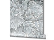 Šedo-modrá tapeta s listy 33306