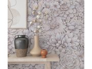 Luxusní, strukturovaná, šedo-růžové květinové vliesové tapety s vinylovém povrchem.