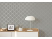 Hladká šedá vliesové tapety se stříbrným geometrickým vzorem.