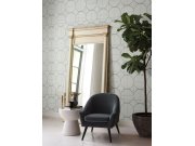 Luxusní, šedo-stříbrná, geometrické vliesové tapety s vinylovém povchem. Kovové pololesk, výrazná textura, vzory hexagonů. Hexagon cca 10cm. Foto interiéru je pouze ilustrační - odlišné barvy.