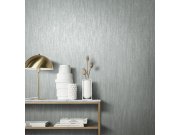 Pololesklá šedo-stříbrná vliesové tapety s vinylovém povrchem, hrubší látkové textura. Foto interiéru je pouze ilustrační - odlišné barvy.