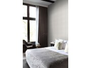 Metalické šedokrémové vliesové tapety na zeď, imitace dřeva, jemná textura.
