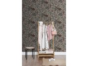 Starorůžové vliesové tapety na zeď, květiny v odstínech zelené a hnědé.