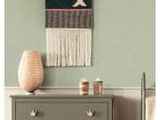 Světle zelená vliesové matná tapety na zeď s béžovémi pruhy, textura imitace látky.