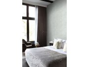 Světle zelená vliesové tapety s vinylovém povrchem, imitace mačkané hrubší látky, kovové zlatý pololesk. Foto interiéru je pouze ilustrační - odlišné barvy.