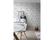 Vliesové bílá tapety s nepravidelným černým vzorem.