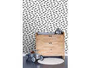 Vliesové, bílá tapety s černými nepravidelnými půlkruhy.