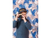 Vliesové tapety s látkovou texturou. Rostliny, ptáci, květiny a motýli na petrolejovém podkladu.