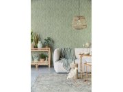Luxusní vliesové tapety s vinylovém povrchem, plastické motivy listů v odstínech pololesklé zelené a šedo-zelené, hrubší látkové textura. Foto interiéru je pouze ilustrační - odlišné barvy.