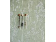 Vliesové tapety s jemně plastickým povrchem, design lučních rostlin v šedo-bílých odstínech na šedo-zeleném podkladu.