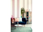 Současné trendy nadčasovém pruhům a proužkům přejí. Jsou kombinovatelné se vzorovémi i jednobarevnými tapetymi, nebo samostatně dokáží vymezit a zútulnit prostor. Pruhy se šikmými proužky v růžové a modré a bílé a zelené barvě.