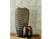 Vliesové tapety. Žíhaný podklad, výrazný geometrický vzor, odstíny šedé a šedo-zelené, střídání matu a pololesku.