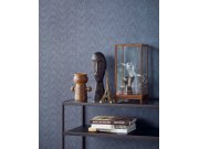 Vliesové tapety. Elegantní, jemně plastický modrý metalický pololesklý vlnkové vzorek na černém podkladu.