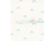 Vliesové, dětské tapety. Bronzové čárky a duha ve žluté, růžové a zelené barvě.