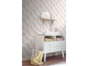 Béžové vliesové tapety na zeď, nádech do růžové, bílé, béžové a šedé linie.