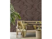 Efektní hnědé křivky na bronzové vliesové tapetě.