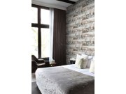 Šedobéžové vliesové tapety na zeď, imitace kamenného obkladu.