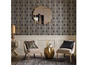 Luxusní černá vliesové tapety se zlatými ornamenty ve stylu Art deco.