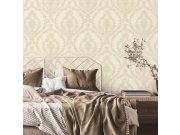 Luxusní béžové vliesové tapety na zeď, zámecký vzor s perlovém pololeskem, drobné stříbrné třpytky. Rozměry role: 1,06 x 10 m