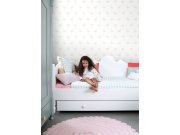 Vliesové bílá tapety na zeď s jemně stříbrnými metalickými srdíčky. Srdíčka 2x2,2cm.