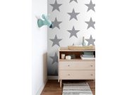 Bílá vliesové tapety s šedými hvězdami.